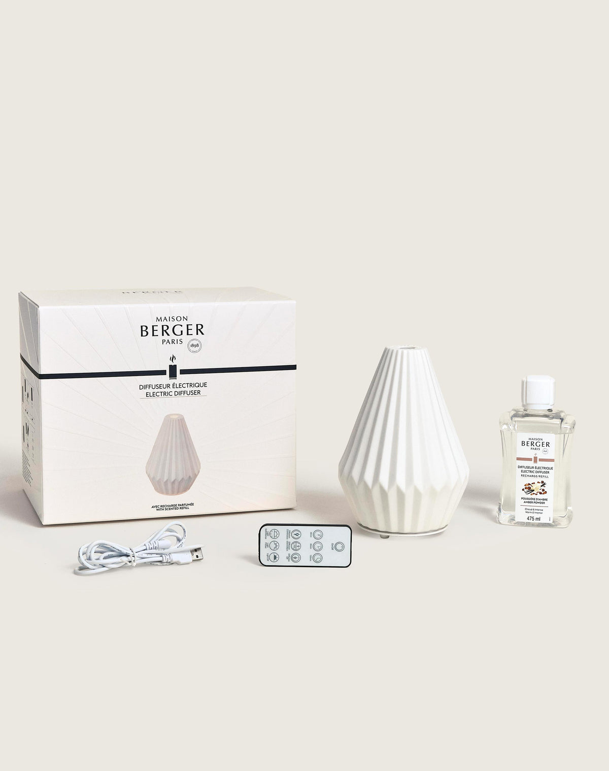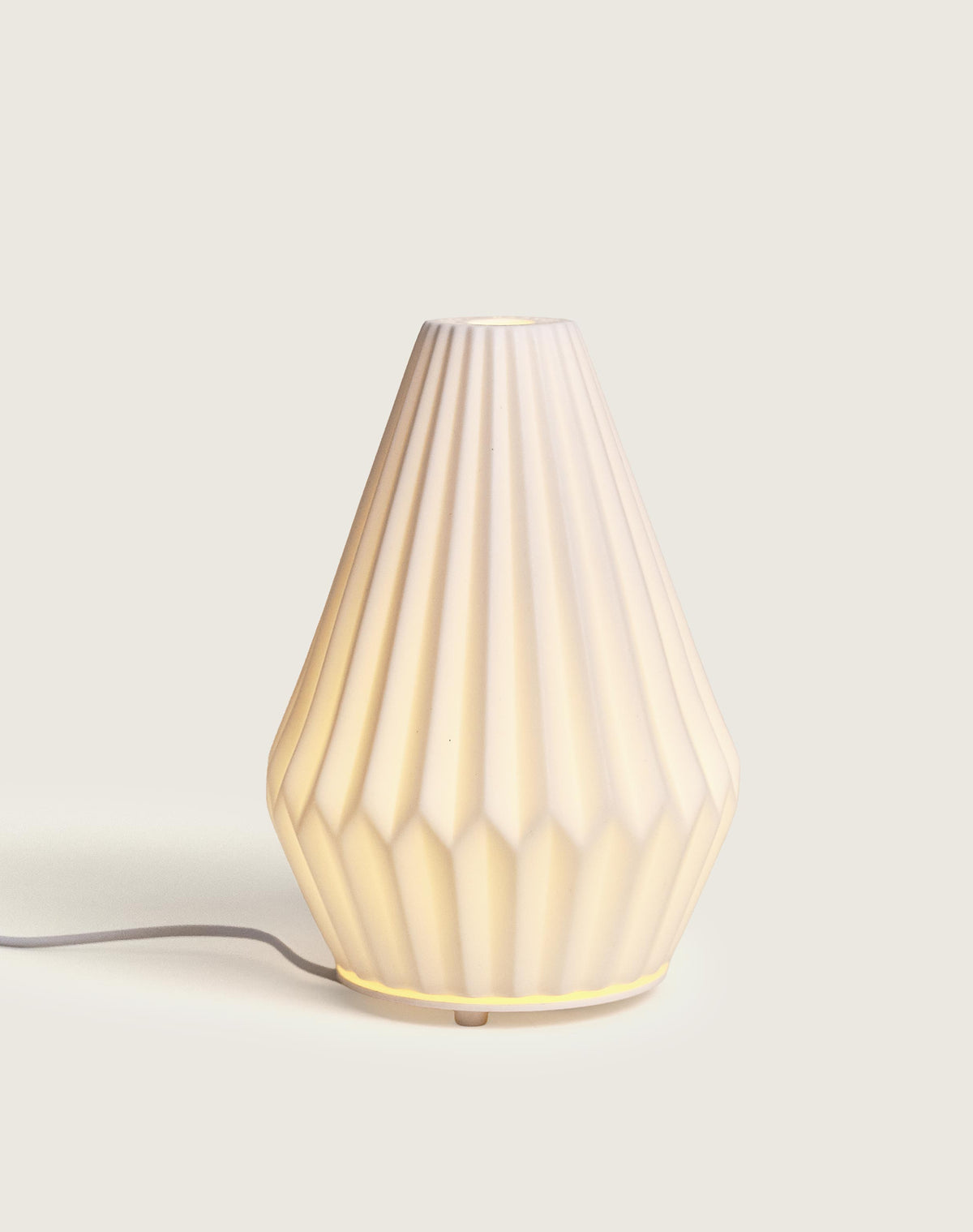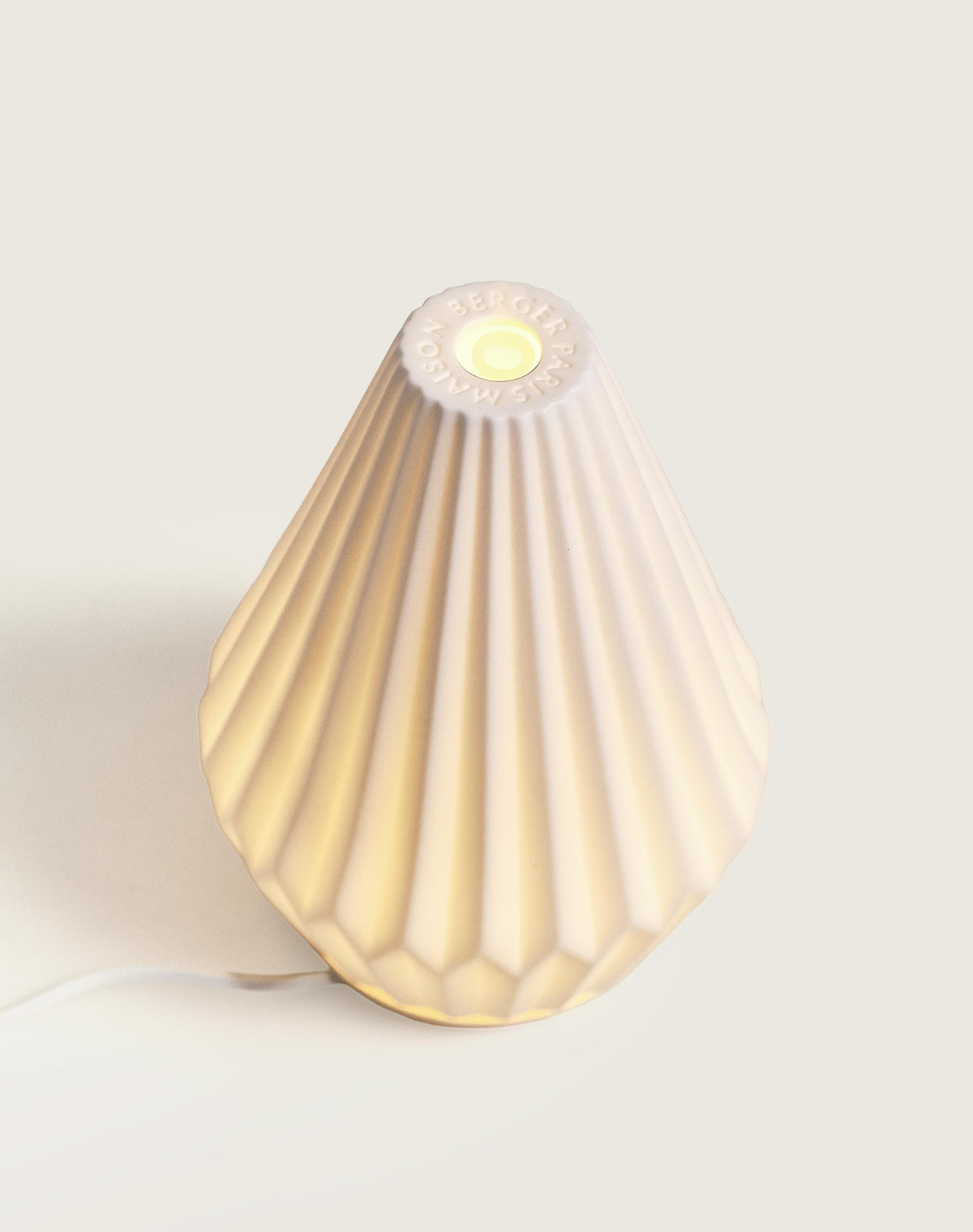 El Difusor eléctrico Cône destaca por su diseño depurado, inspirado en la geometría cónica, que se integra con elegancia en cualquier interior contemporáneo.